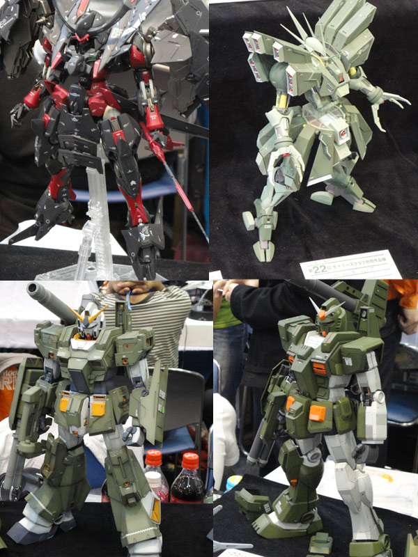右下・ハタさんの1/48フルアーマーガンダムと左下・斉藤はじめさんの1/48FAアレックスは以前開催された「キャノンコンペ」にて拝見させいただいたのですが本物は凄い迫力でした。